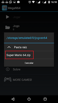 Agora com a ajuda do Es File Explorer eu baixei um jogo e coloquei dentro da minha pasta. O jogo que vou usar aqui como exemplo é o clássico Super Mario 64. Lançado em 1996 pela nintendo para a plataforma.
